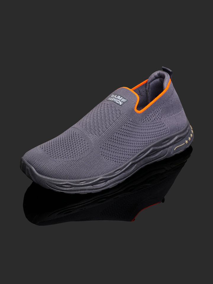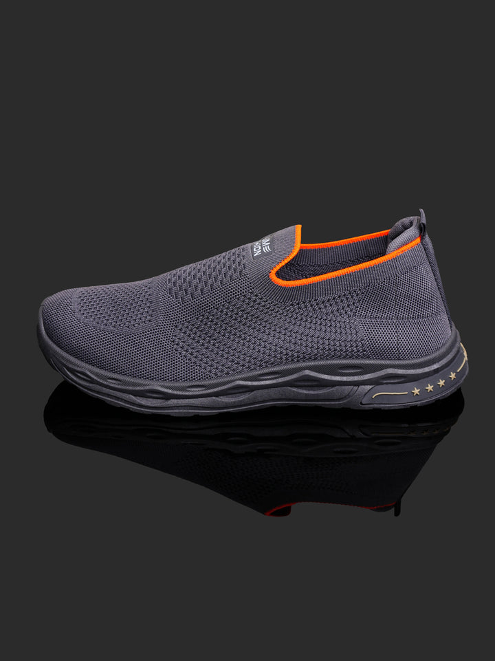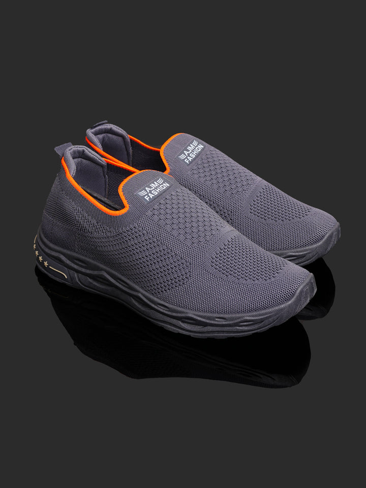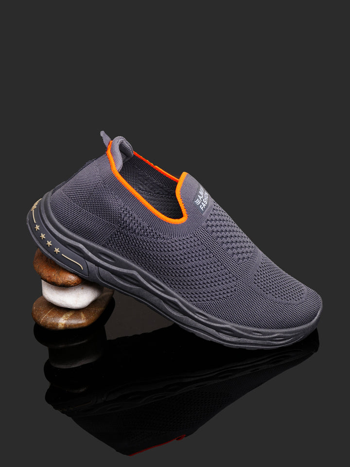 Experience ultimate convenience and modern style with these Men's Lightweight Knit Slip-On Sneakers. Featuring a deep Charcoal Gray color with striking Orange accents around the collar, these shoes are designed for easy, all-day comfort without sacrificing a sharp, athletic look.