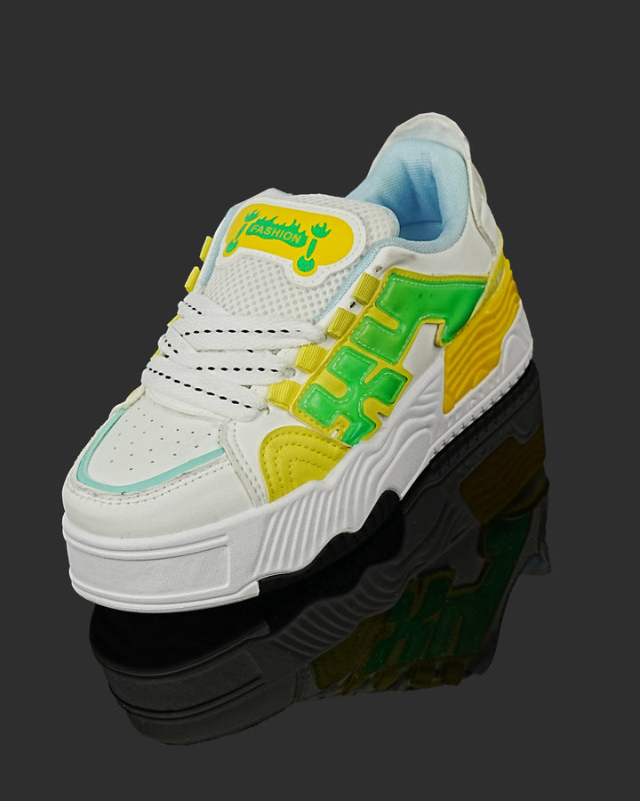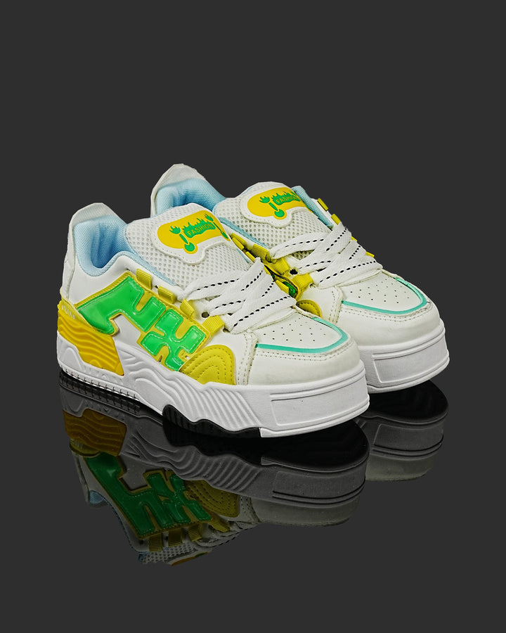 AJK White Yellow Chunky Sneakers – Fresh Casual Unisex Shoes