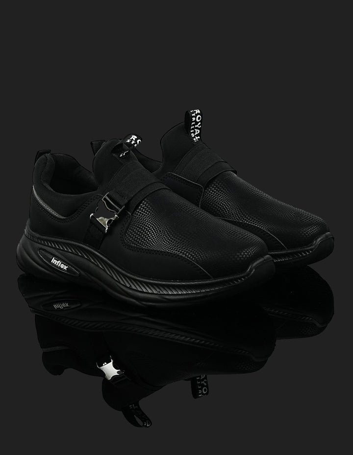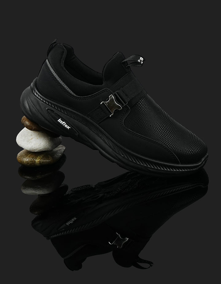 The K-808 Black Slip-On Sports Shoes combine sleek style with maximum comfort. Crafted with a breathable mesh upper and cushioned sole, these shoes provide long-lasting wear. The metallic buckle adds a premium touch, making them perfect for both casual and sporty outfits.