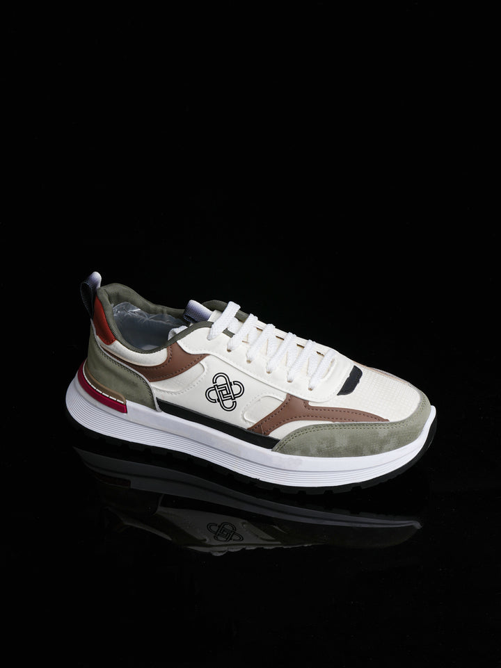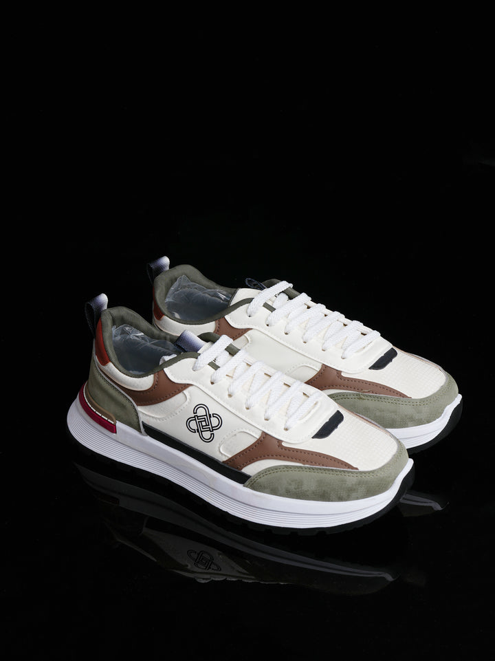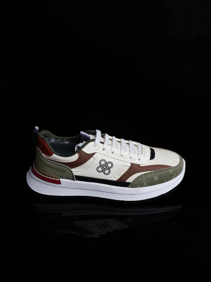 Make a bold statement with the 'Urban Explorer'—a multi-tone men's sneaker that perfectly captures the outdoor and streetwear aesthetic. This unique color combination of cream, warm brown, and trending sage green provides a rugged yet refined look. Built on a responsive cushioned sole, it delivers all-day comfort without compromising on high fashion style.