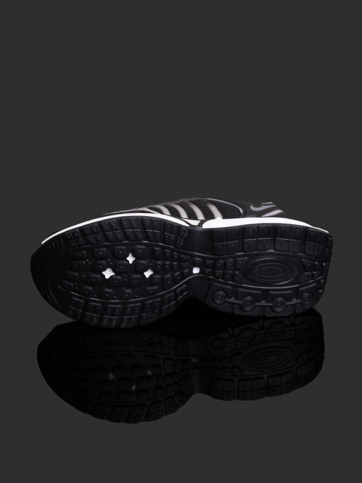 • Classic Structure: The upper features a durable black mesh base for breathability, reinforced by synthetic leather overlays with eye-catching gray striped details that give it a distinctive, speed-focused look.