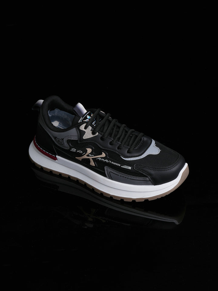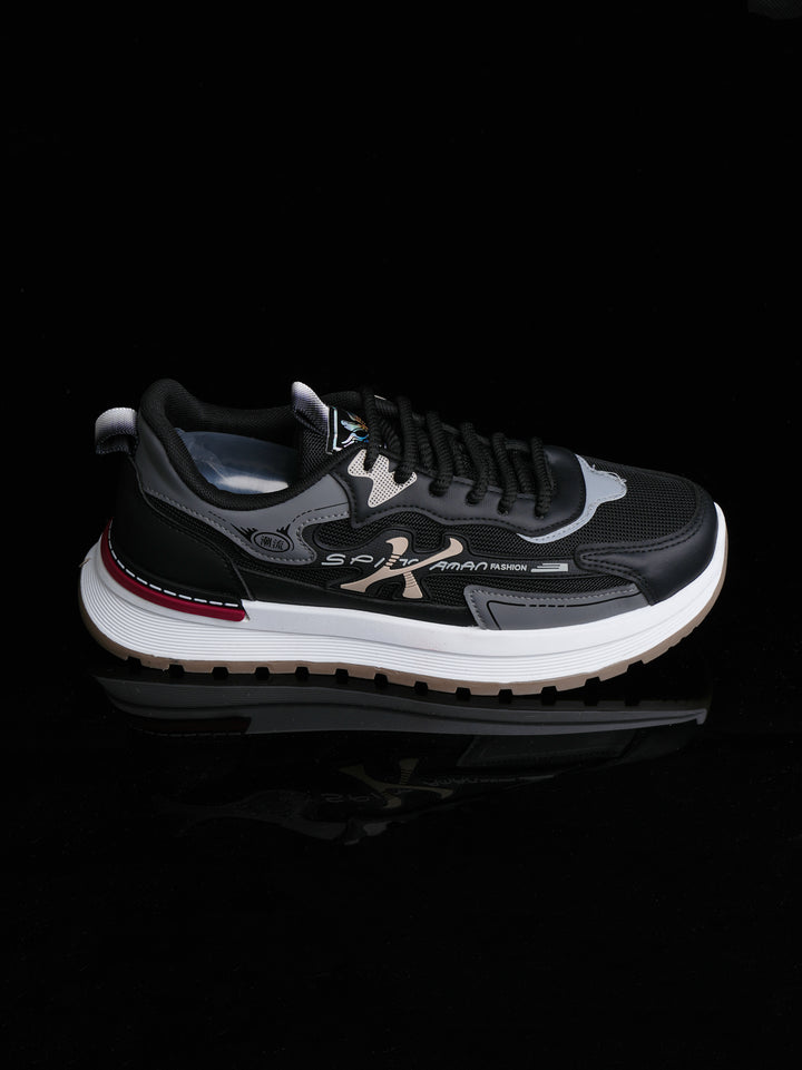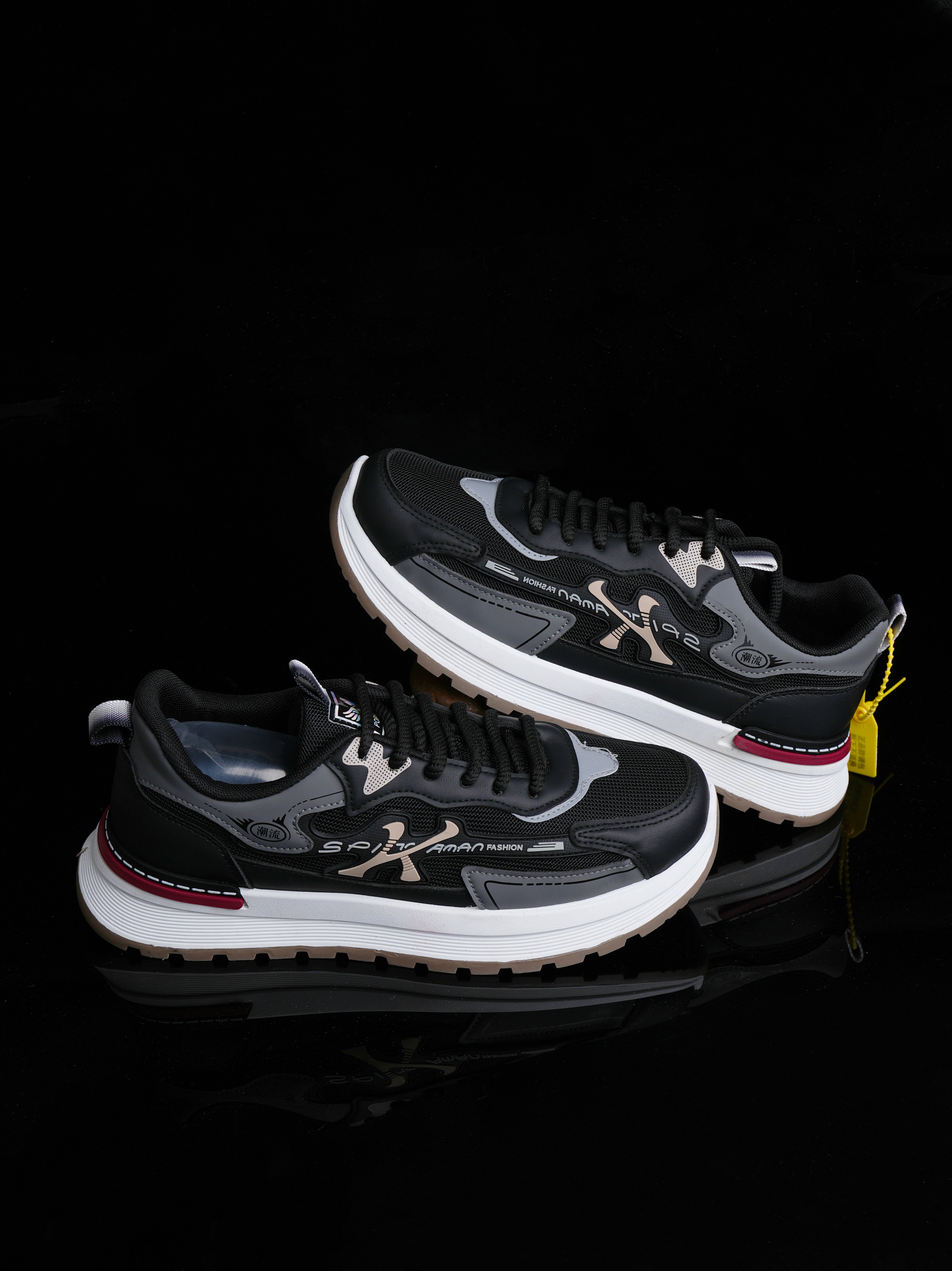 Stealth Street Runner: Black & Grey Lightweight Performance Sneaker