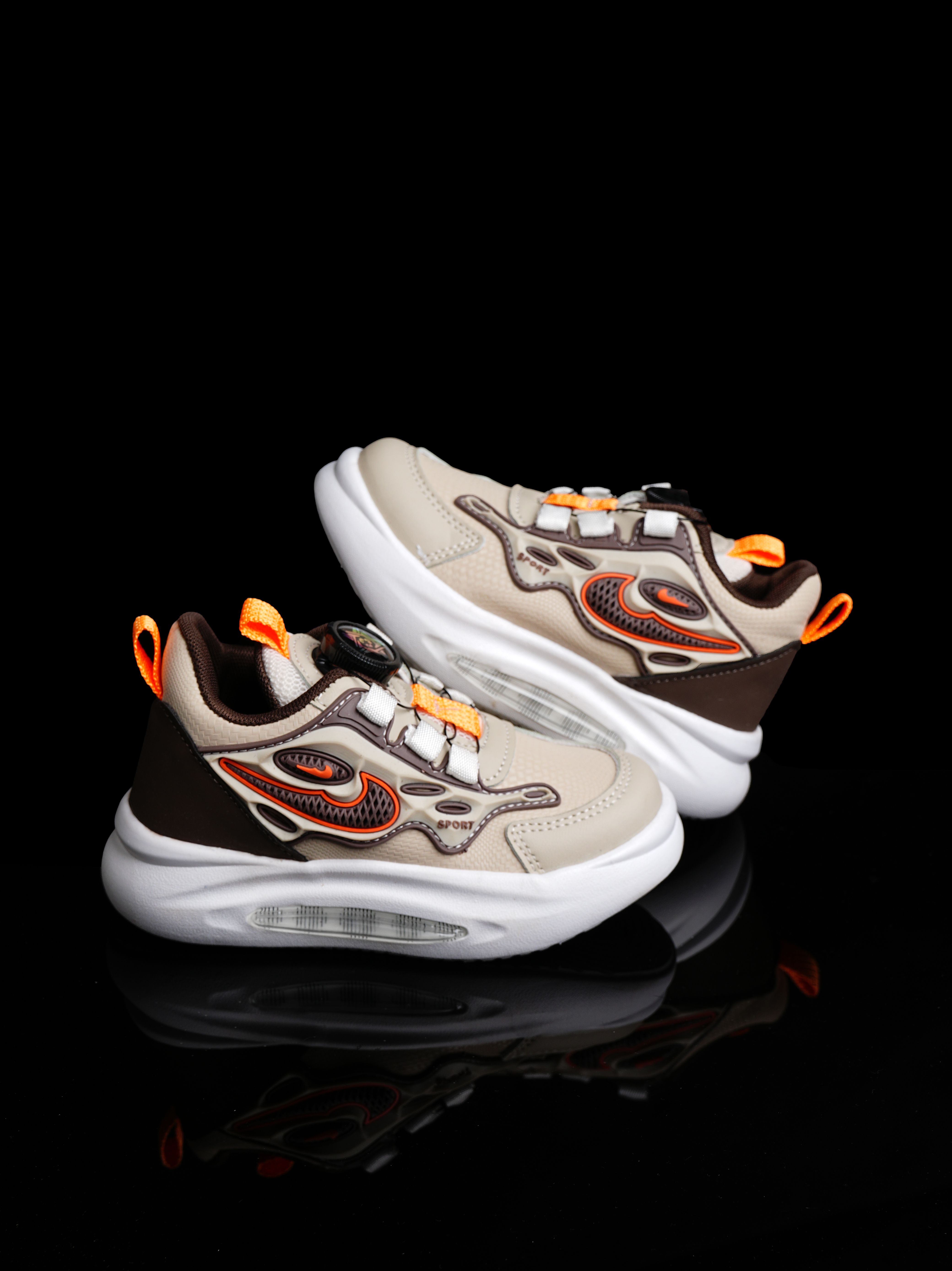 Kids' Athletic Trainer with Air Unit & Dial Closure | Sporty Beige/Orange Sneaker