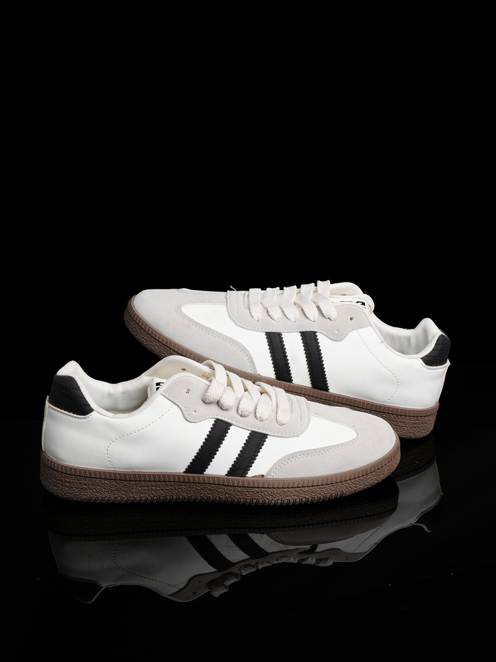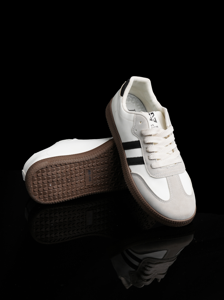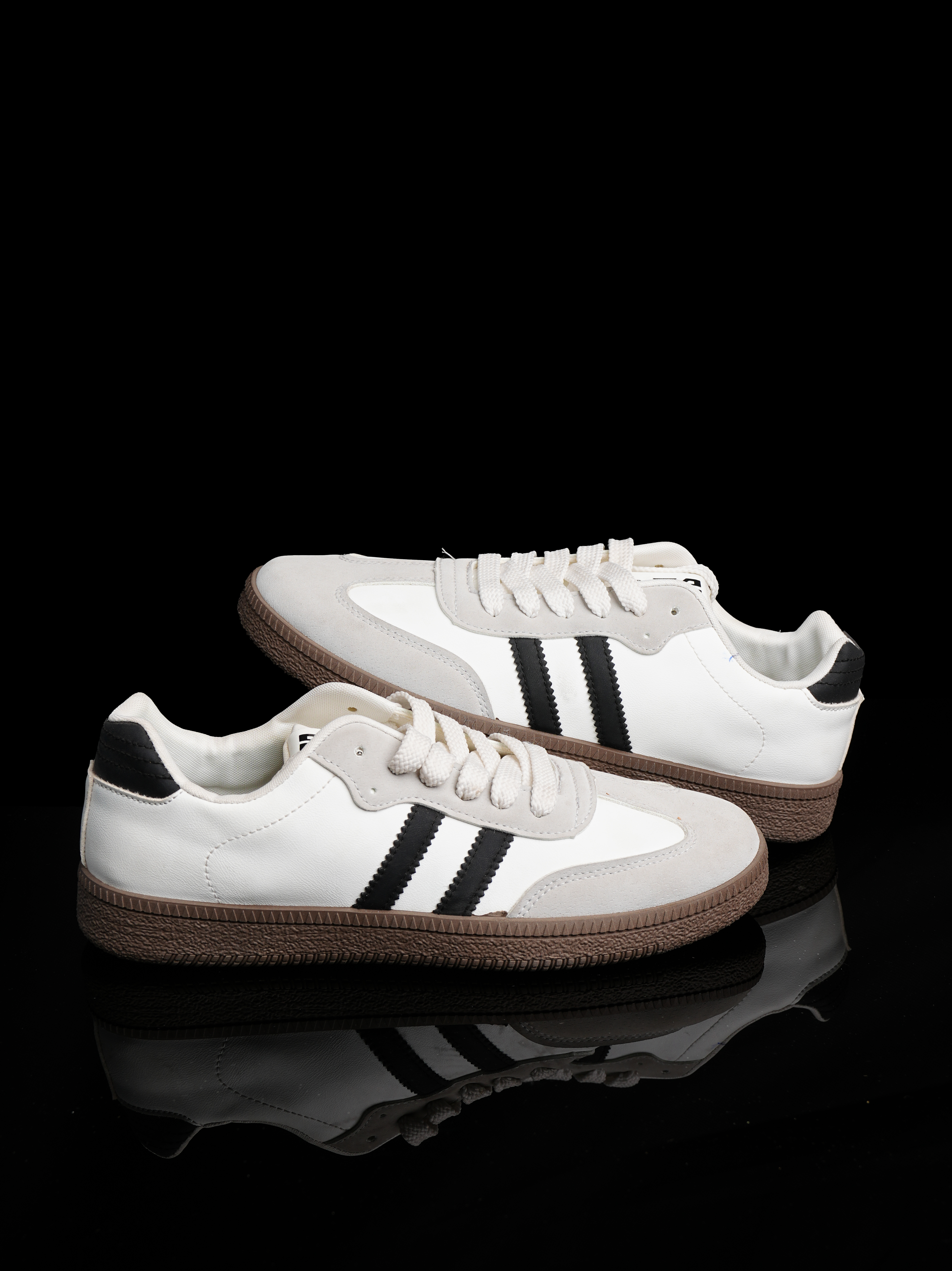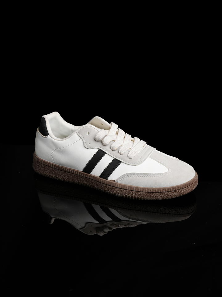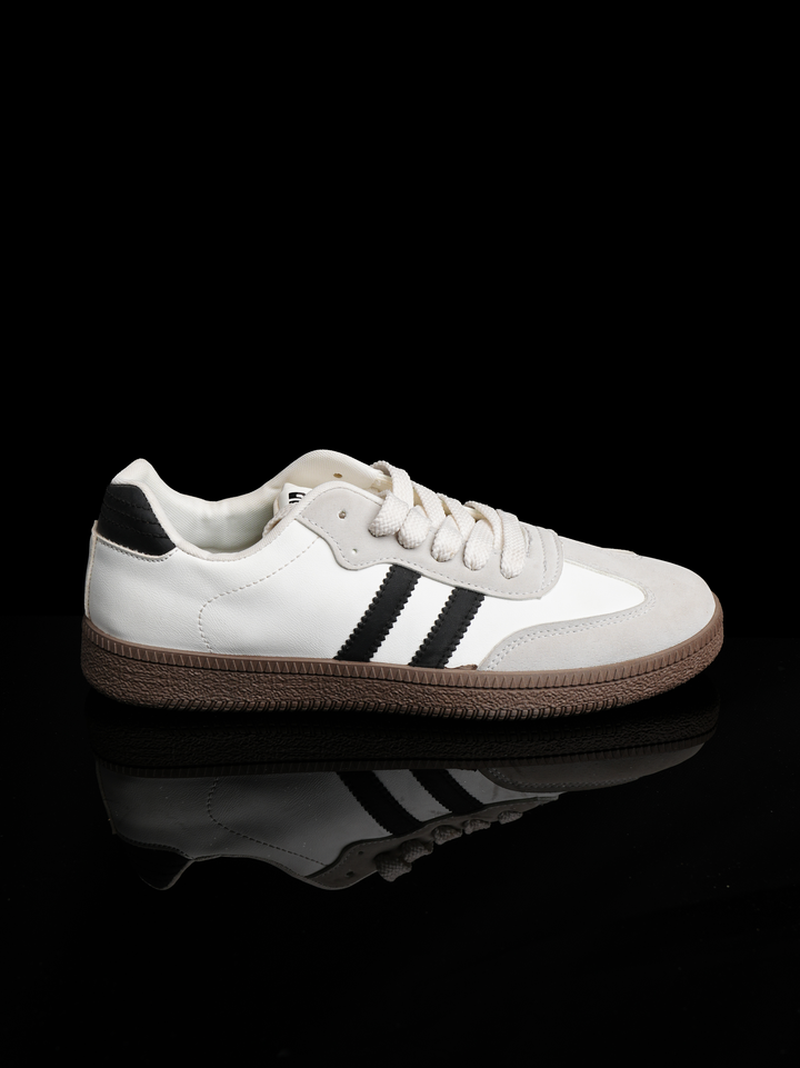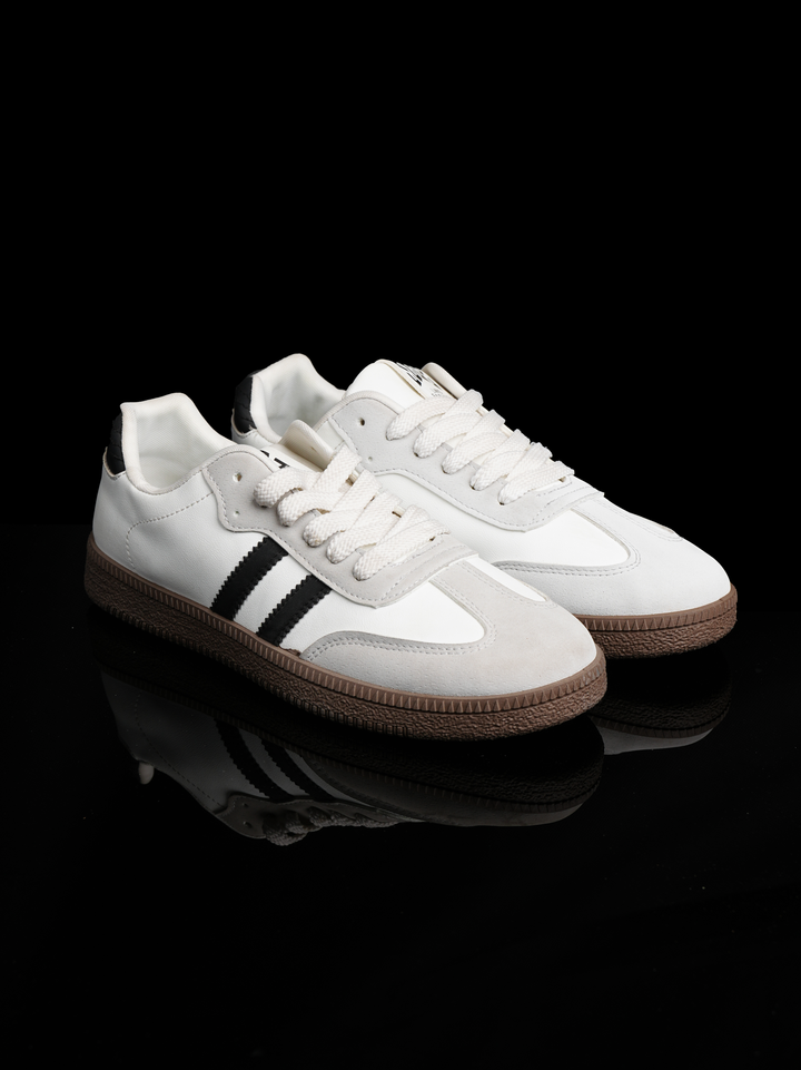 Classic White/Black Indoor Sneaker - Gum Sole Retro Style