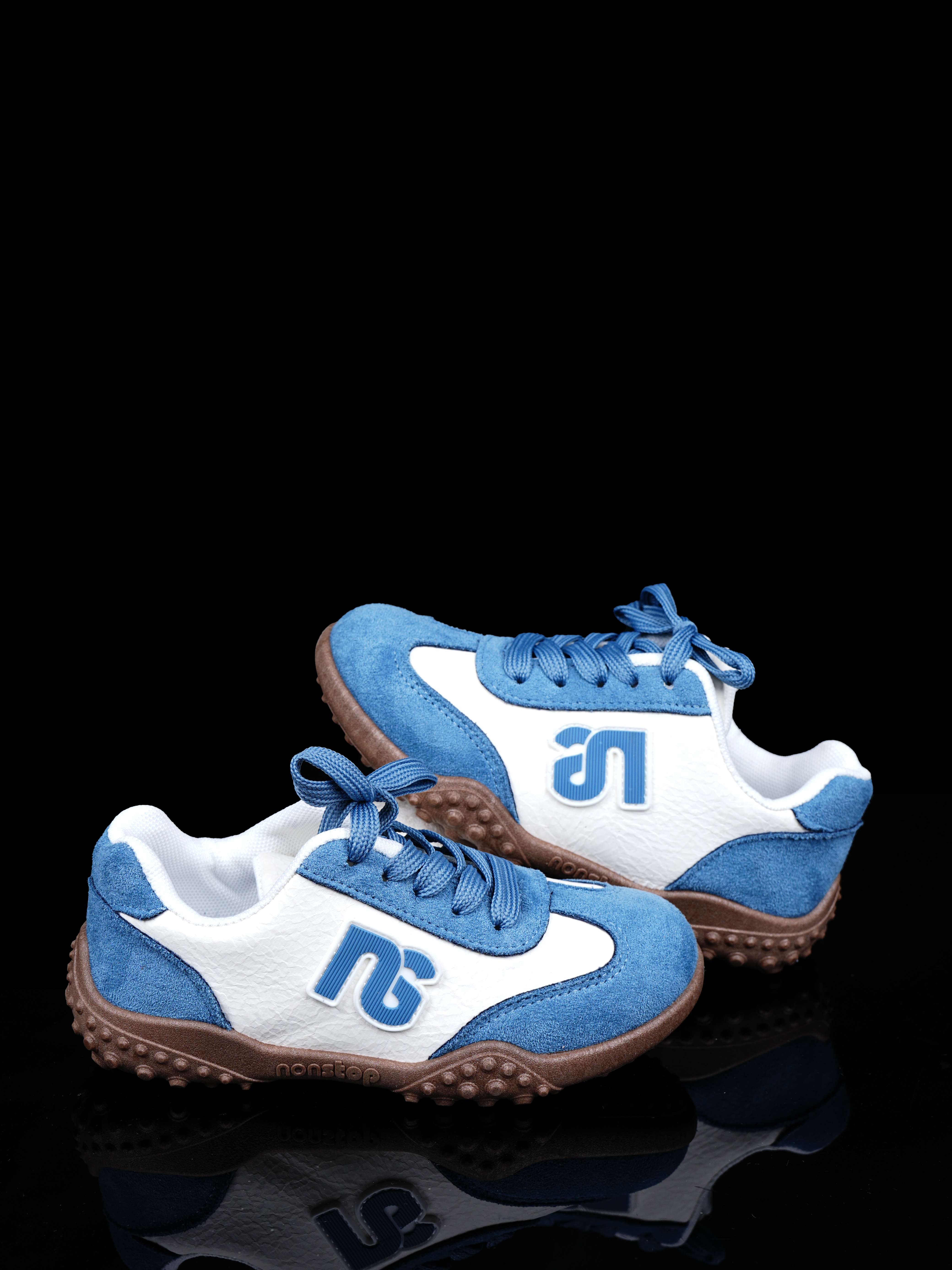 Why a Customer Should Buy: A customer should purchase these trainers for their winning combination of vintage style, functional durability, and safety features. The classic blue and white colorway is stylish, while the exceptional NonStop grip sole ensures their child can play hard and safely. They are a reliable, long-lasting investment in a child's active lifestyle.