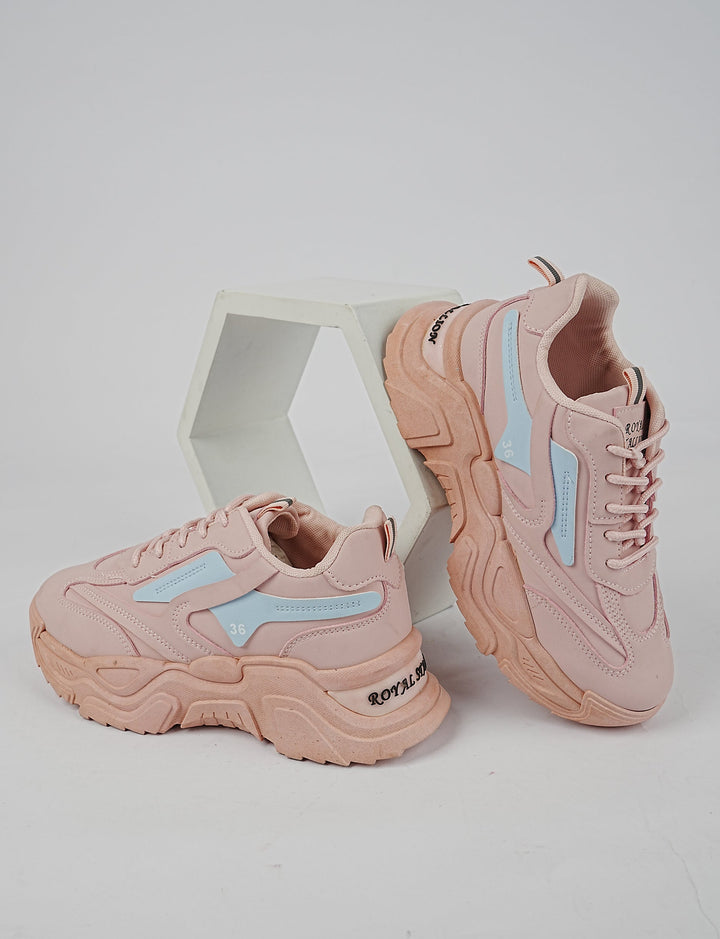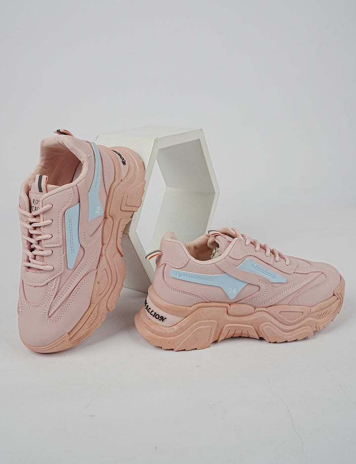 Elevate your sneaker game with our Rosegold Radiance Chunky Sneakers. These sneakers feature a lush pink tone complemented by a hint of metallic rosegold, blending urban style with feminine charm. The thick, sculpted soles provide excellent support, while the soft fabric ensures comfort.