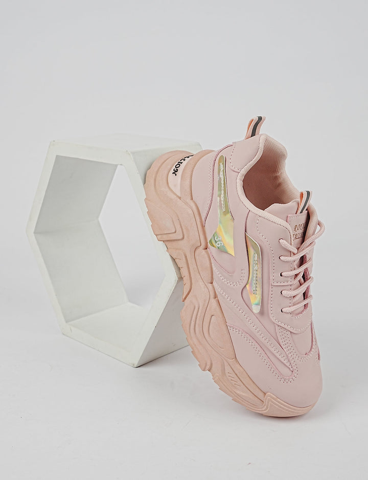 Elevate your sneaker game with our Rosegold Radiance Chunky Sneakers. These sneakers feature a lush pink tone complemented by a hint of metallic rosegold, blending urban style with feminine charm. The thick, sculpted soles provide excellent support, while the soft fabric ensures comfort.