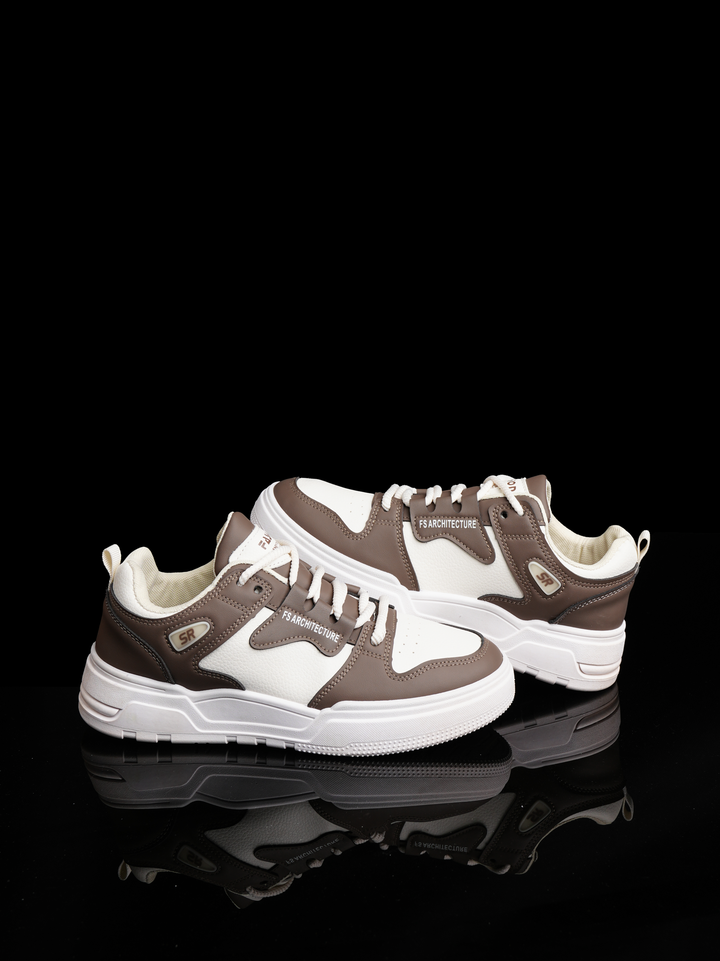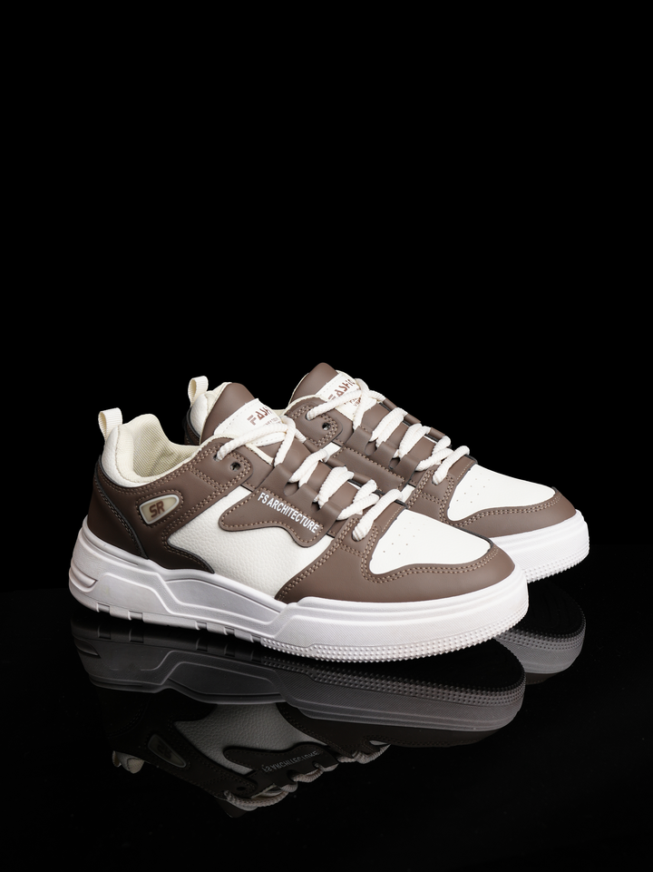 Brown & White Retro Court Sneaker | Chunky Low-Top Streetwear Shoe